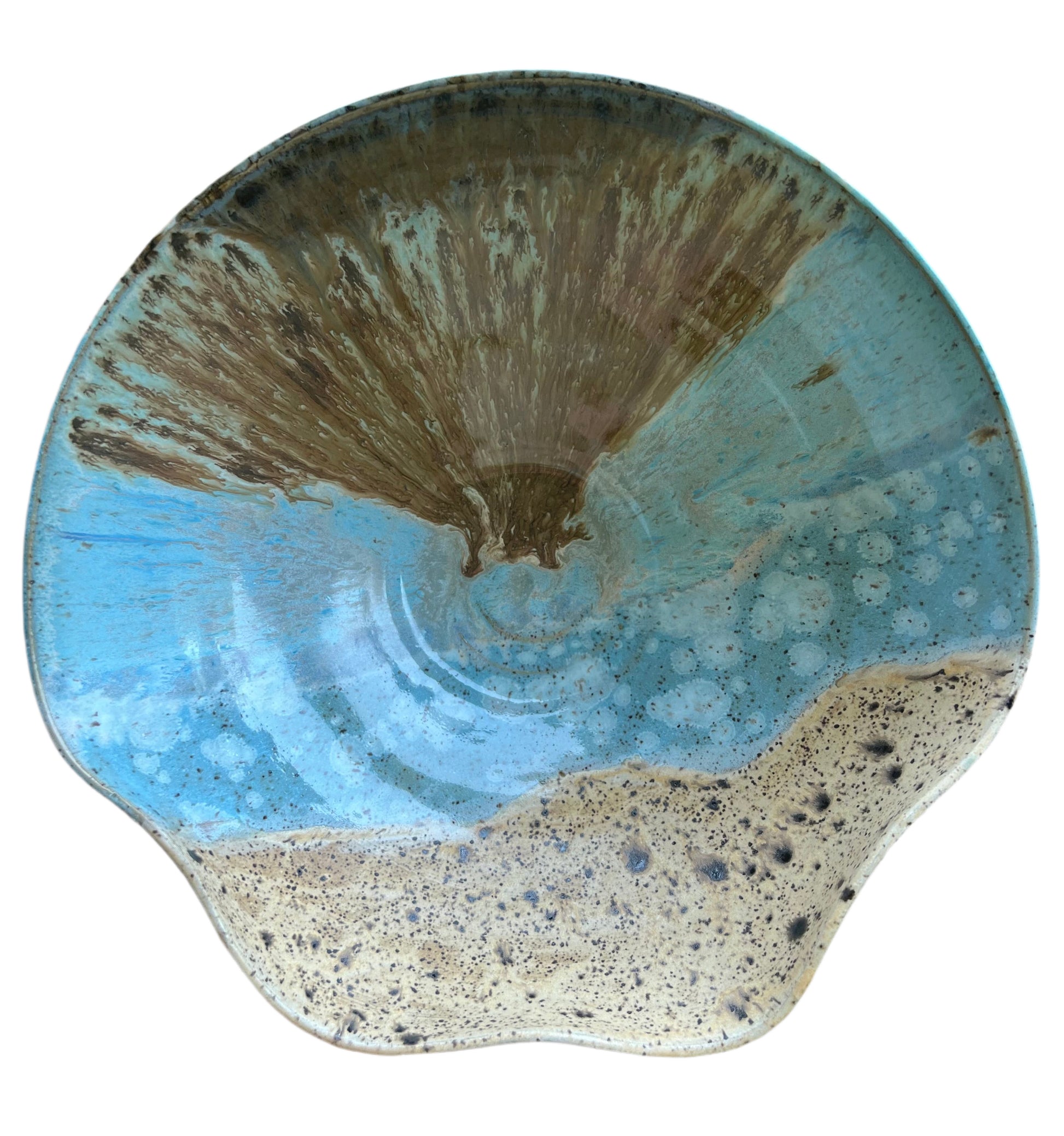 The wheel-thrown form is finished with a hand-altered wavy rim, giving it the feel of a wind-shaped shoreline. No two are exactly alike, but each is made with intention, imperfection, and a whole lot of mud-slinging in my studio in the woods of northern Pennsylvania.